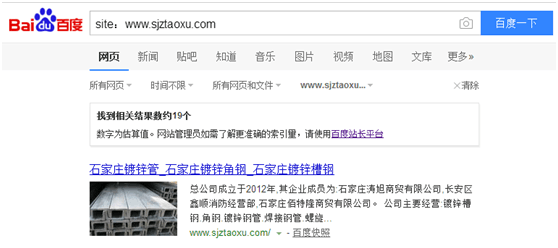 1.解决方案:标题我们发现是有问题的他原来的是这样的:石家庄镀锌管_石家庄镀锌角钢_石家庄镀锌槽钢,里面不包含我们所有要做的关键词,因为我们知道网站的标题是承载要做的关键词的使排名更快的出现所有我们修改完是这样的:石家庄镀锌管_镀锌圆钢_镀锌角钢_镀锌槽钢_镀锌扁钢,这样的写法既包含了所有的关键词还拓展其他的主关键词,这也是为了后期的客户利益着想。